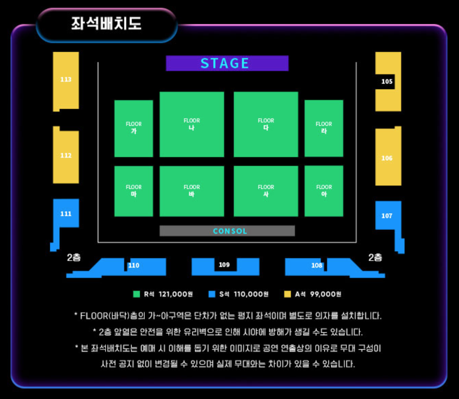 - 무대 사이드 좌석은 구조물로 인한 시야 방해 생길수 있음