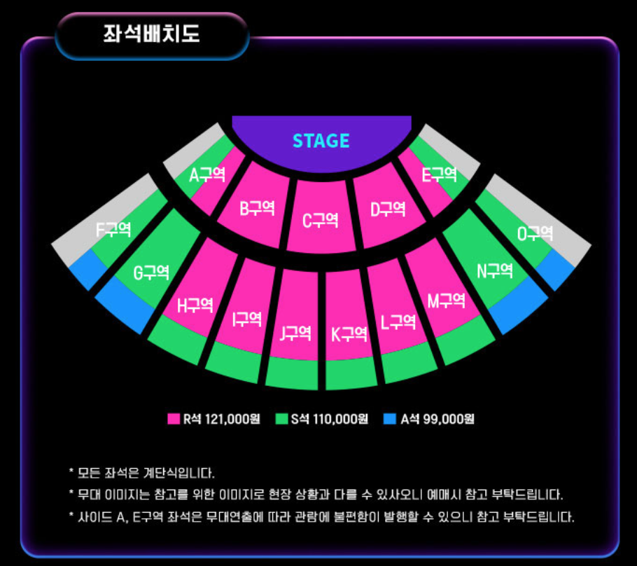 가격은 자리별 차등 99,000원 ~ 121,000원 까지