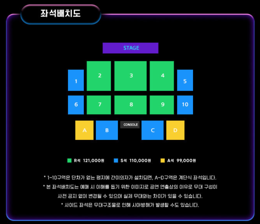 좌석마다 차등 99,000원 ~ 121,000 수준