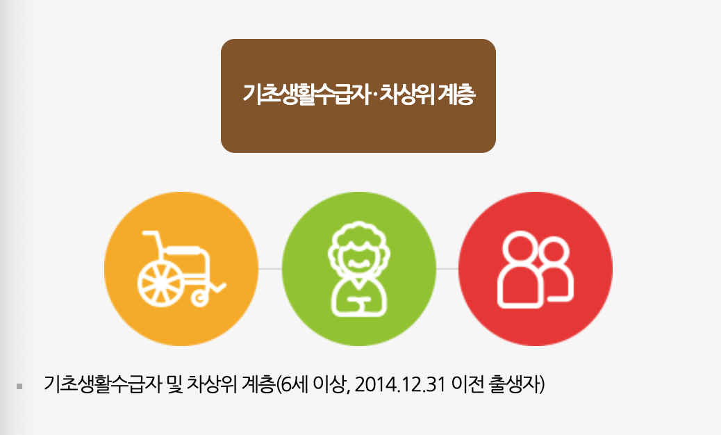 기초생활수급자 및 차상위 계층 (6세이상, 2014년 12월 31일 이전 출생자)