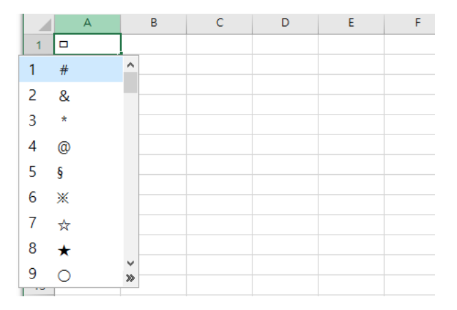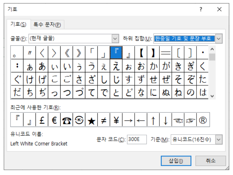 엑셀 특수문자 단축키 상단 - 기호
