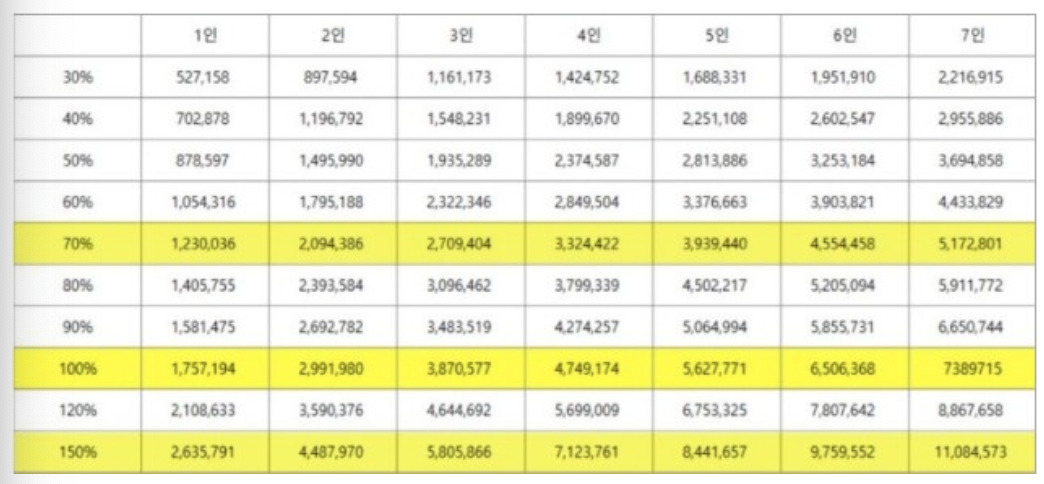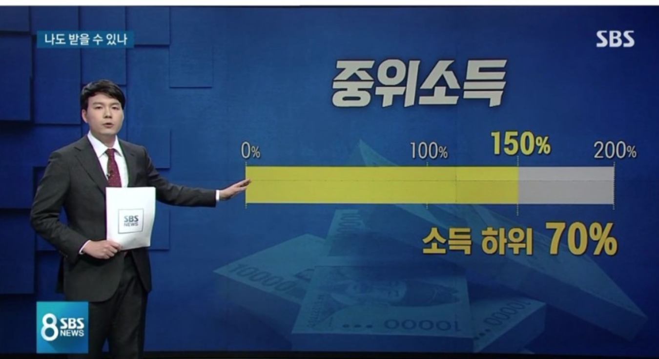 전체 가구 70% ~80% 에 해당 중위소득 150% (하위소득 70%) 이하 가구로확대 4인가구 기준 월소득 712만원 가정에게 약 100만원 가량 현금성 혜택일 지원하는 제도 입니다.