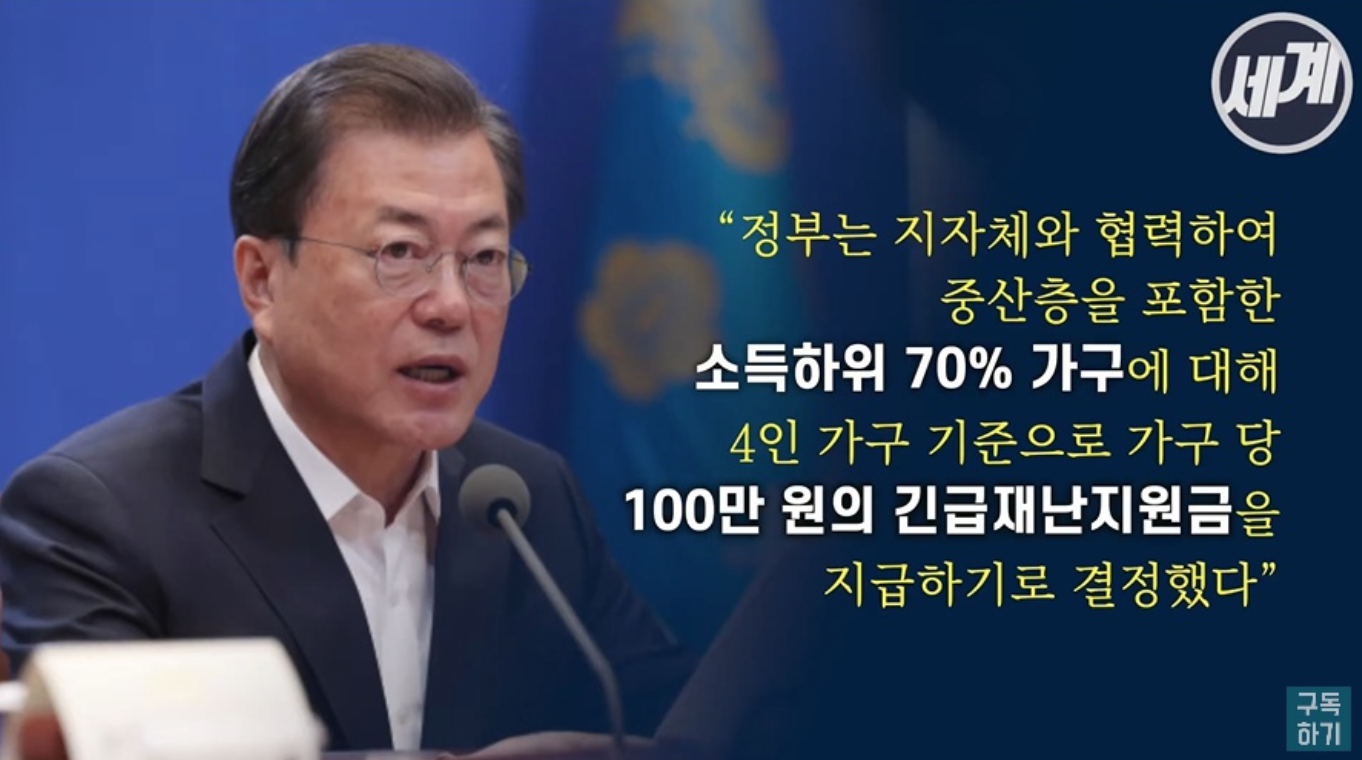 신종 바이러스 코로나 19로 인한 전세계의 시름이 깊어가는 가운데 시장경제가 무너지며 생계에 직접적 타격을 입는 사람들이 늘어나고 있으며 실제 극단적인 선택을 하는 이들까지 생기고 있는 실정입니다. 이런가운데 문재인 정권에서는 코로나 바이러스로 인한 대한민국 긴급재난 지원금 다시말해 긴급생계비지원 에 대한 내용을 밝히며 많은 사람들의 관심이 집중되고 있습니다.