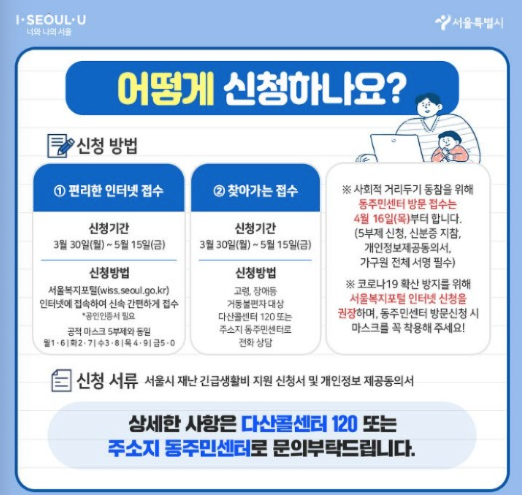 긴급재난지원금 신청 방법 : 코로나 긴급생계비지원금