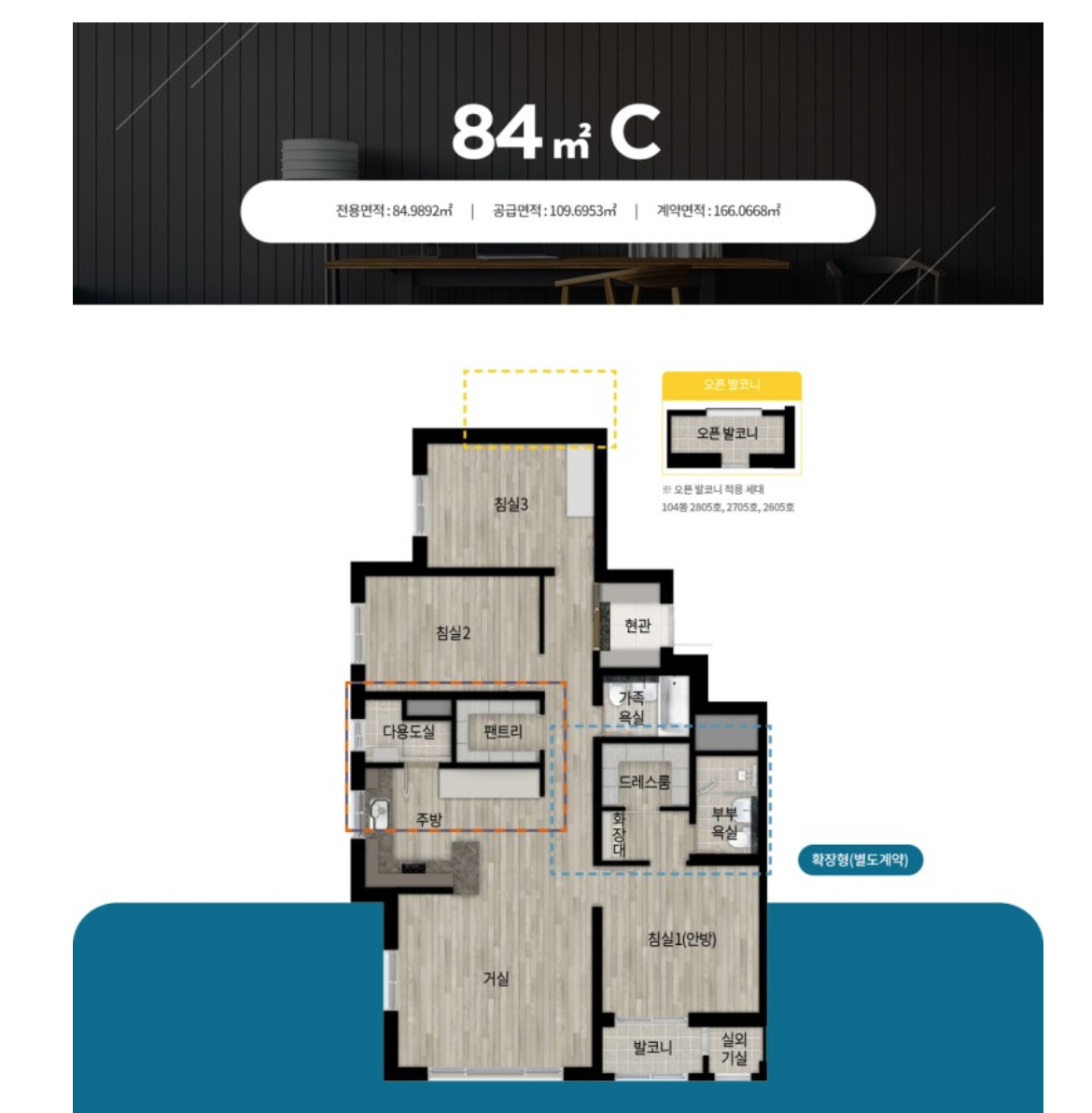 타입: 59제곱(109세대) / 75제곱(114세대) / 84제곱A(204세대)
