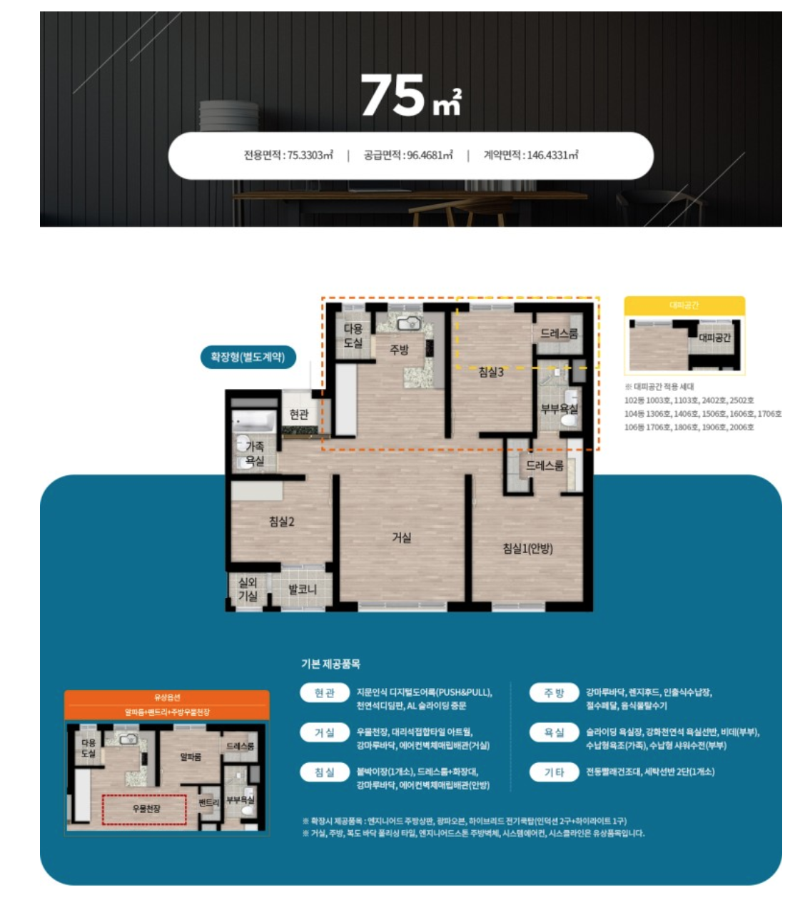 조합원 선택량이 많아 일반분양이 상대적으로 적습니다.