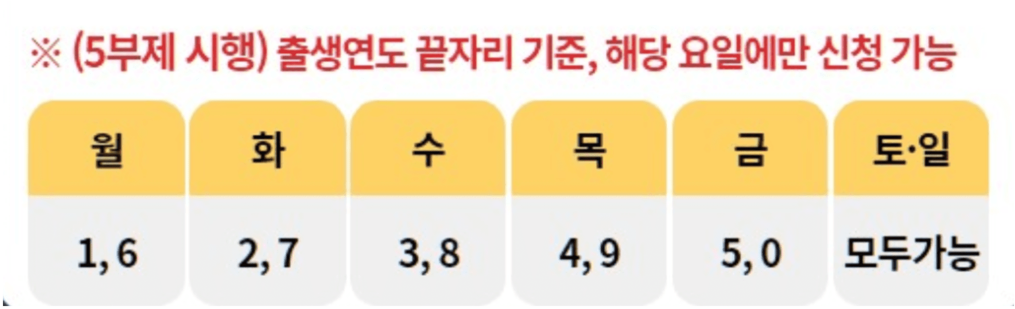 신청시기 (출생년도 끝자리)