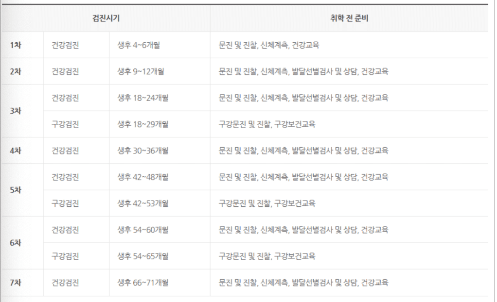 영유아건강검진 취학전