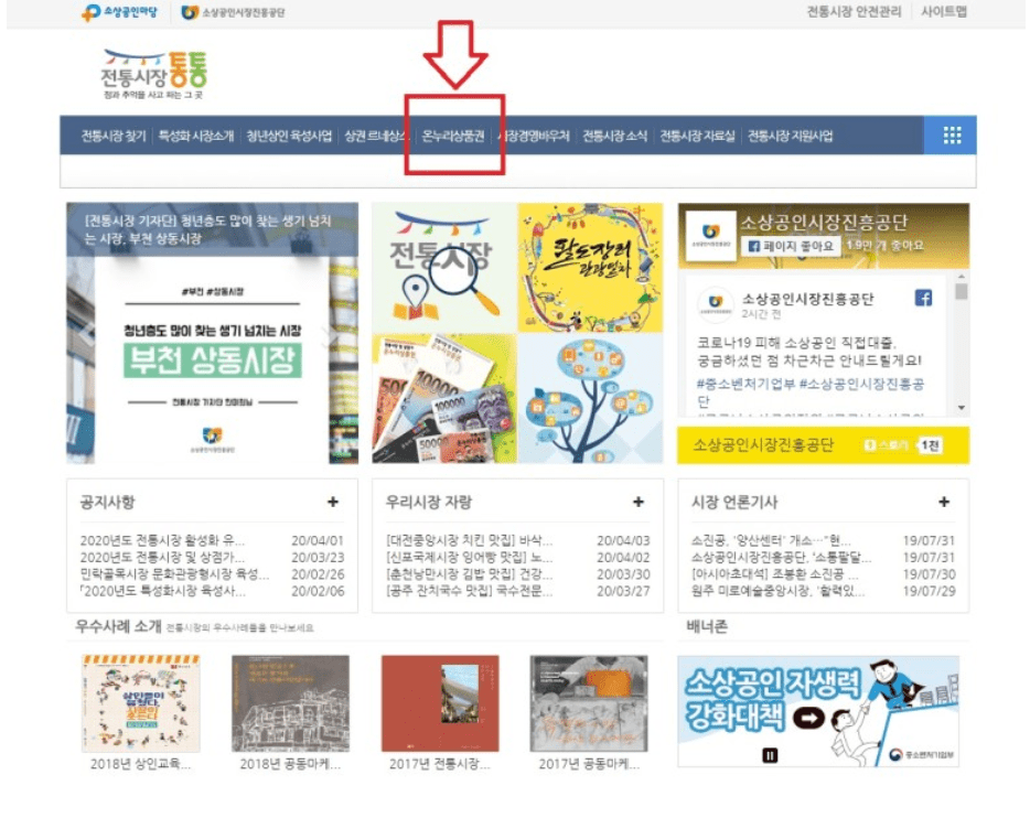 경기 전통시장 톡톡 홈페이지 검색후 들어갑니다.