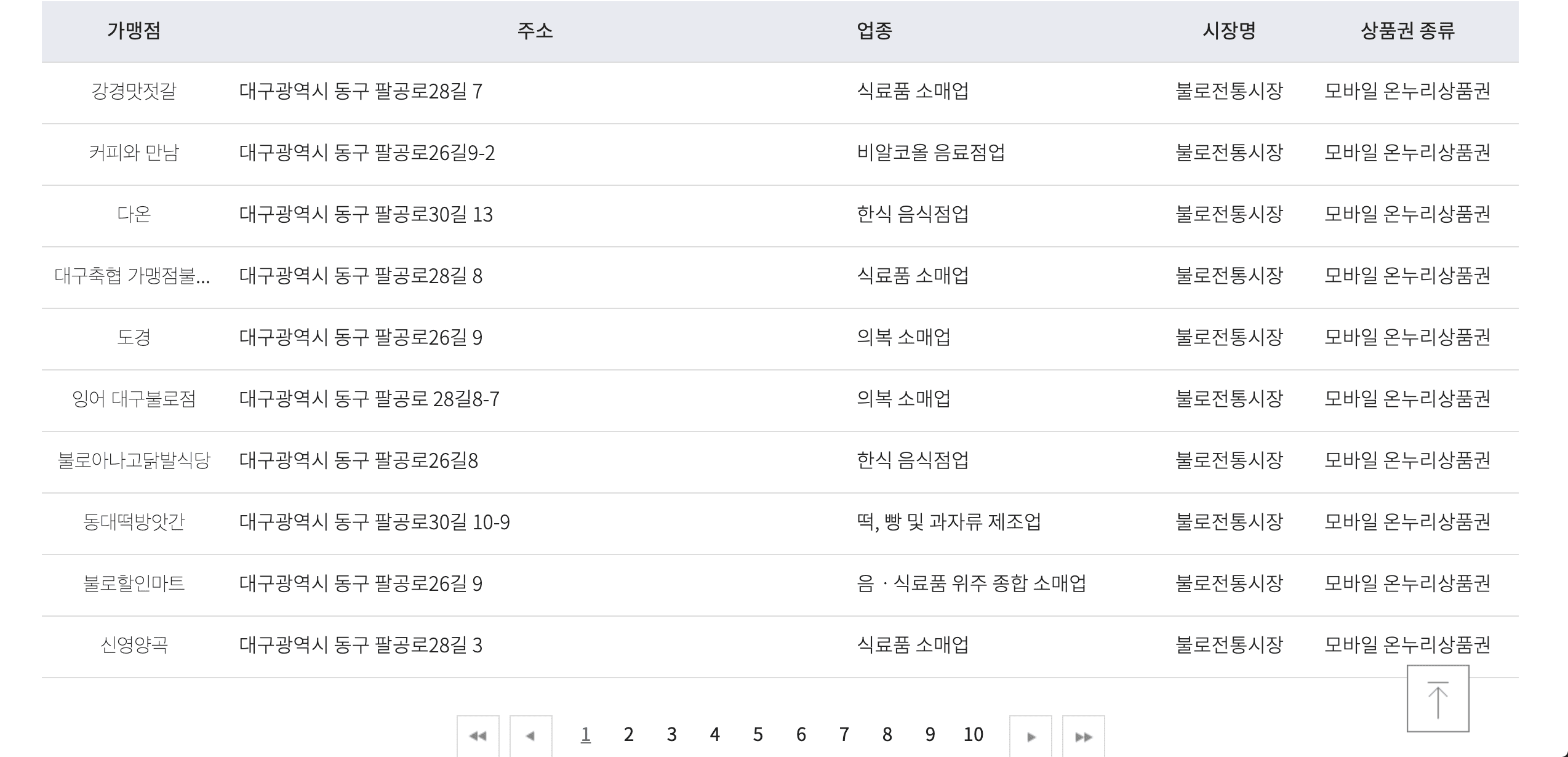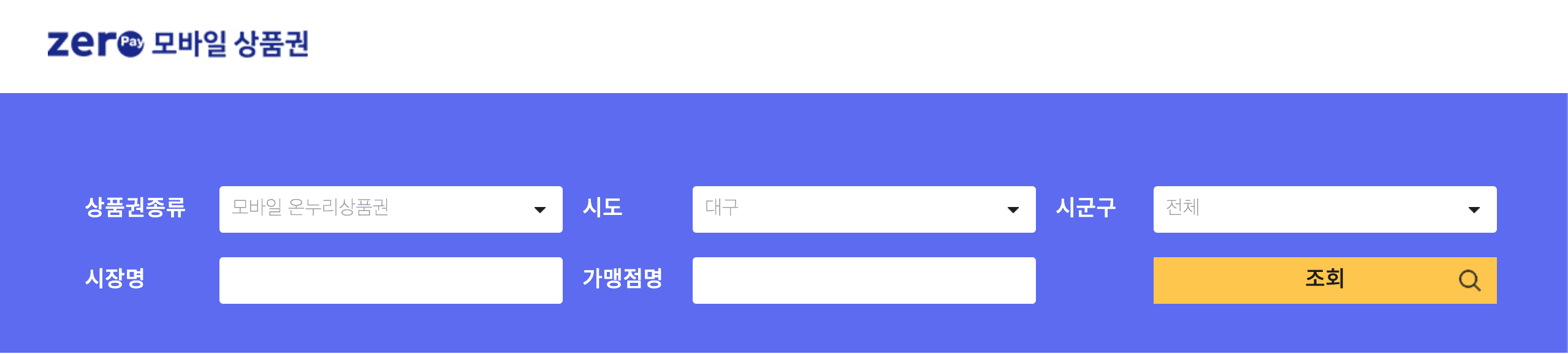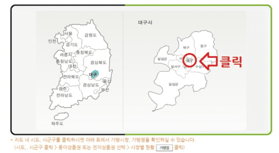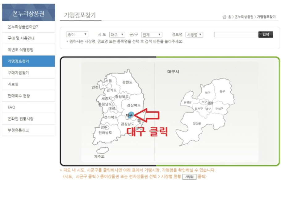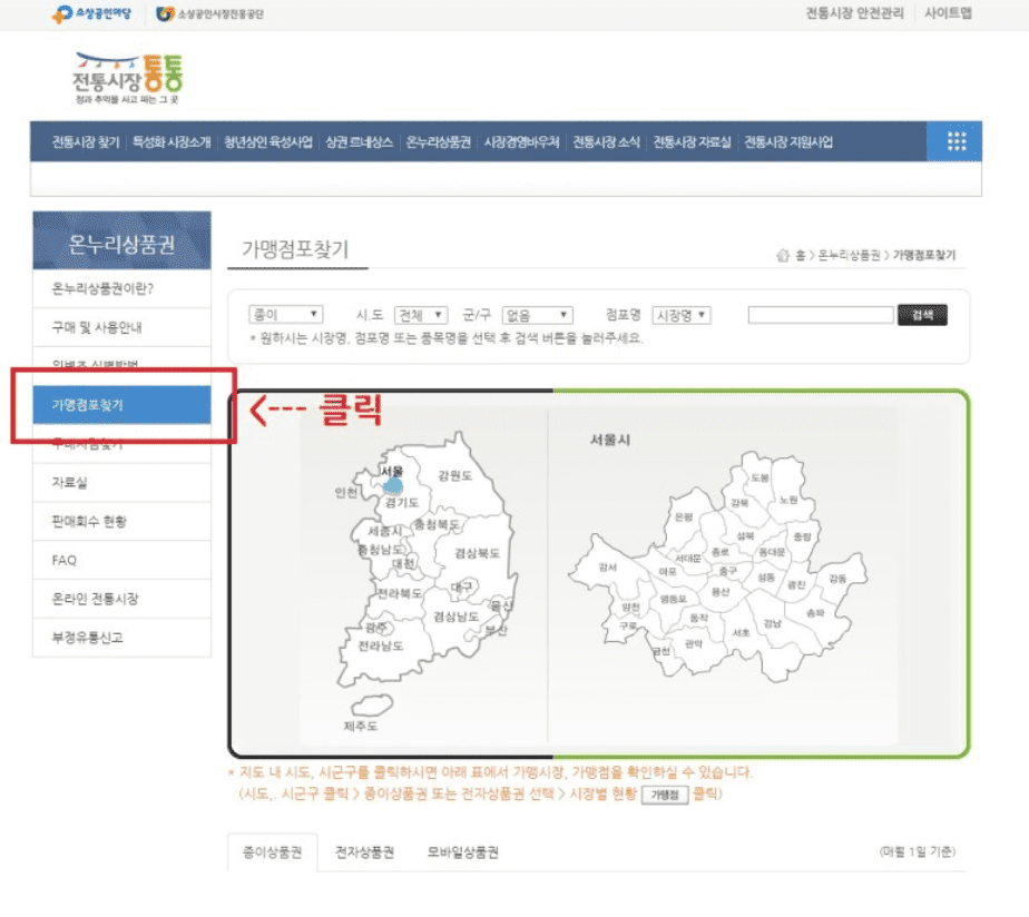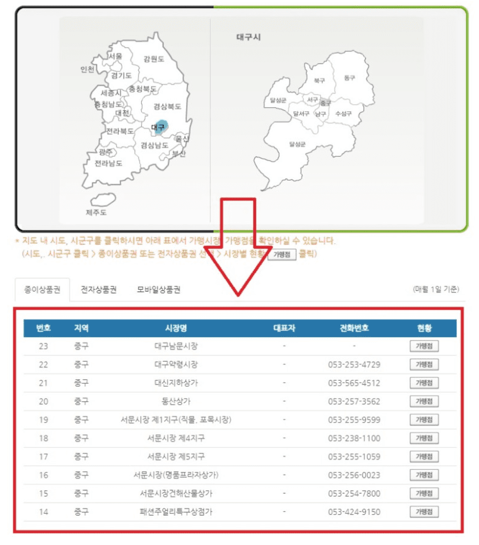 지역 확인시 자신의 지역내 전통시장 상품권 사용처에 대한 정보를 확인할수 있습니다.