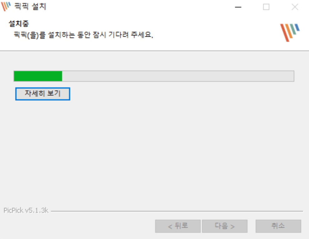 픽픽이 설치중입니다. 초록색이 끝까지 차오를때까지 잠시 기다려 줍니다.