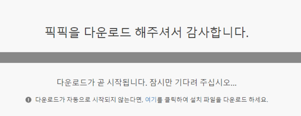 상단 픽픽 다운로드 실행했음에도 정상적 설치가 되지 않을경우 상단 여기 부분을 클릭해 설치 파일을 다운로드 할수 있습니다. 픽픽의 안내에 따라 다운로드 받아주세요.