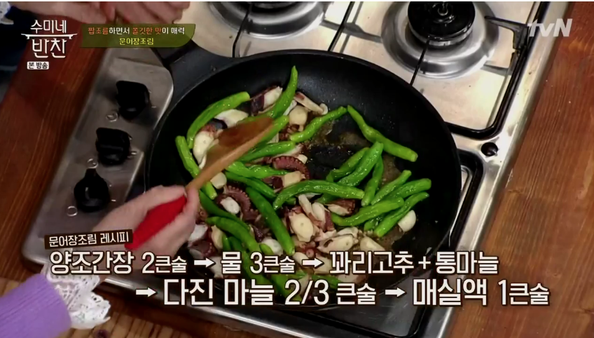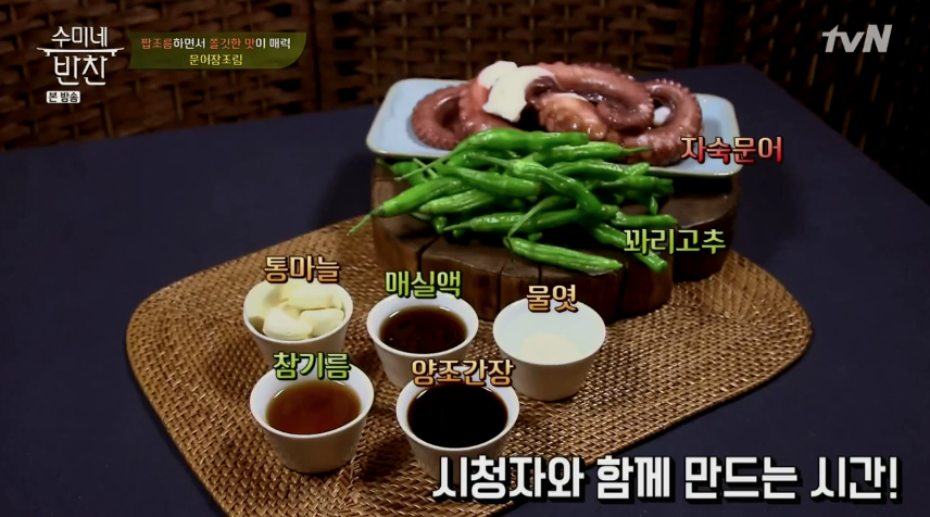 수미네반찬 은 매주 수요일저녁 8시10분 tvN에서 방송 됩니다. 본방송 시청및 무료 재방송 시청도 가능하니 홈페이지에서 간단한 본인인증후 시청 하시면 좋습니다. [수미네반찬89회] 문어장조림 레시피 완성