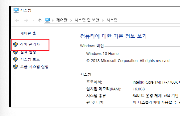 윈도우7 사용자가 윈도우10 으로 업데이트 할경우 장치관리자 사용법을 헤맬수 있습니다.