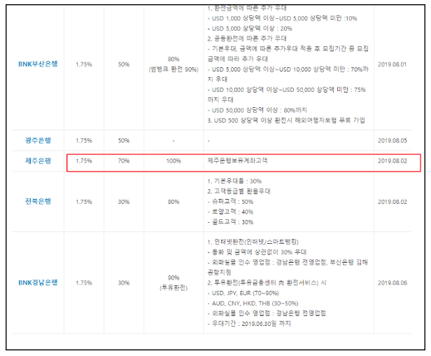 제주 은행 계좌를 보유한분은 무려 100% 환전 우대를 해주기도 합니다.