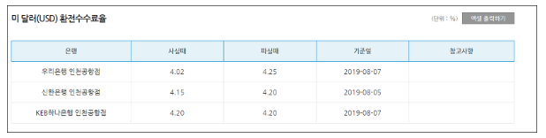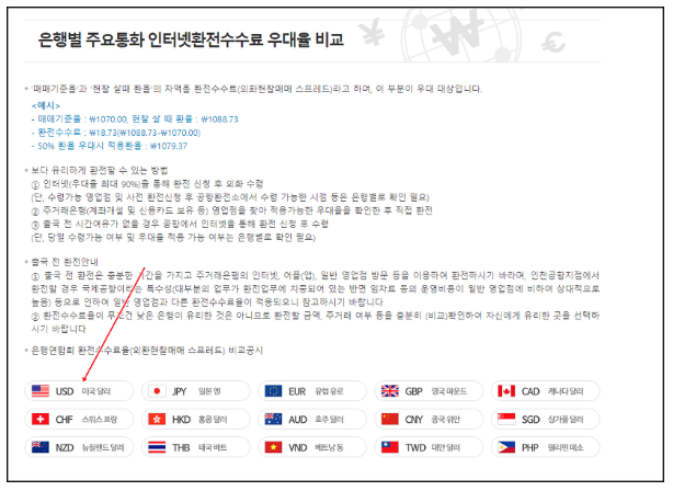 아래는 은행별 환전 수수료 비교 방법에 대해 확인해 봤습니다.
