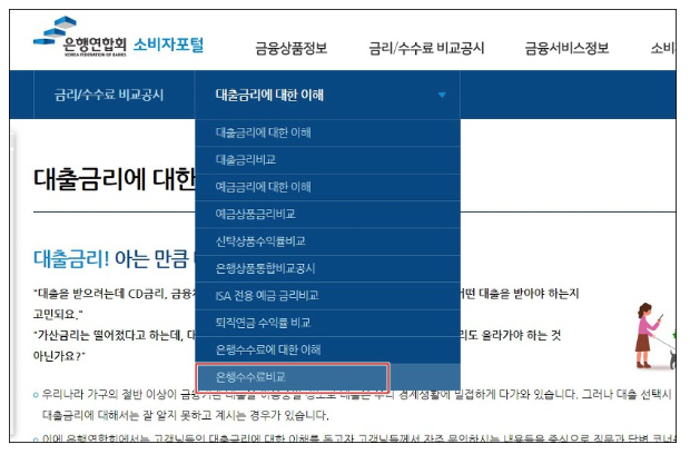 4. [대출금리에 대한 이해] - [은행수수료비교] 클릭