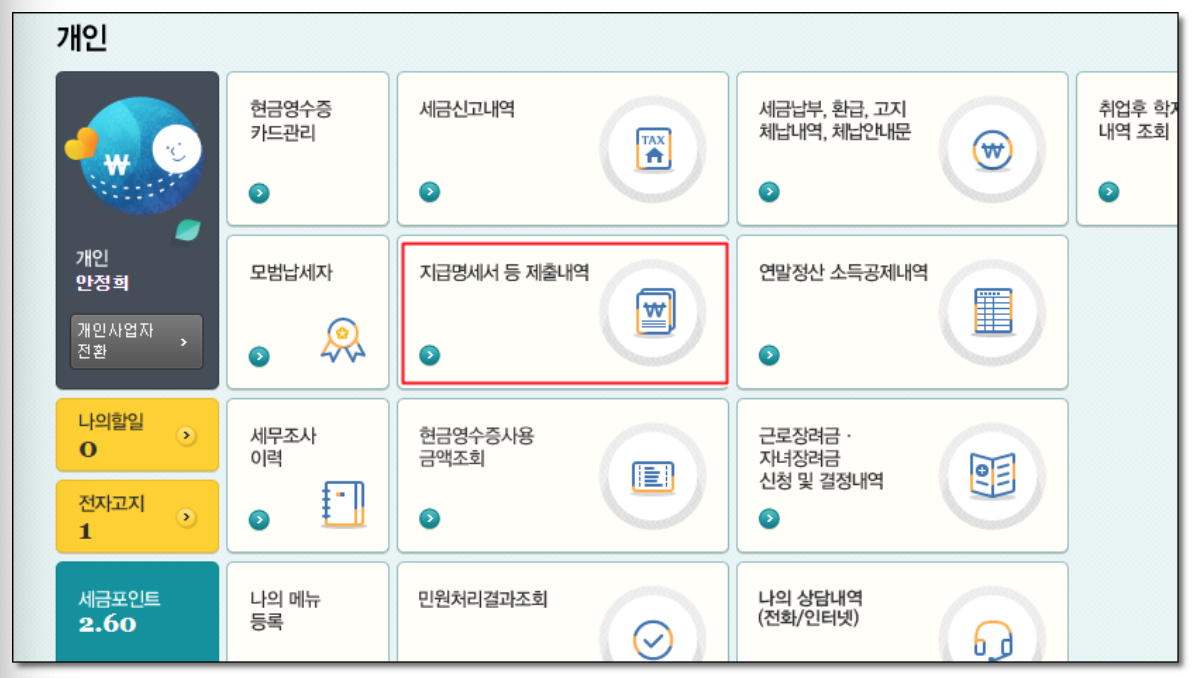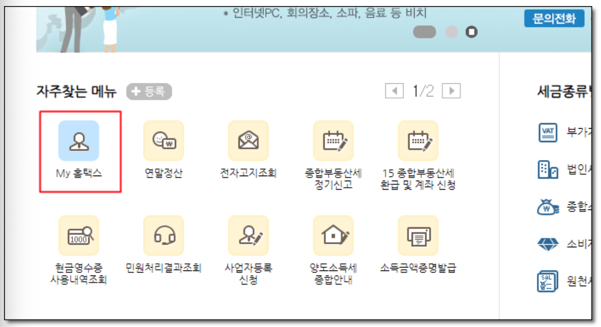 홈택스에 로그인시 메인페이지 [my홈택스] 메뉴로 들어가줍니다.