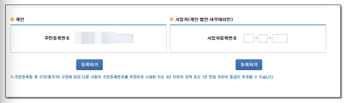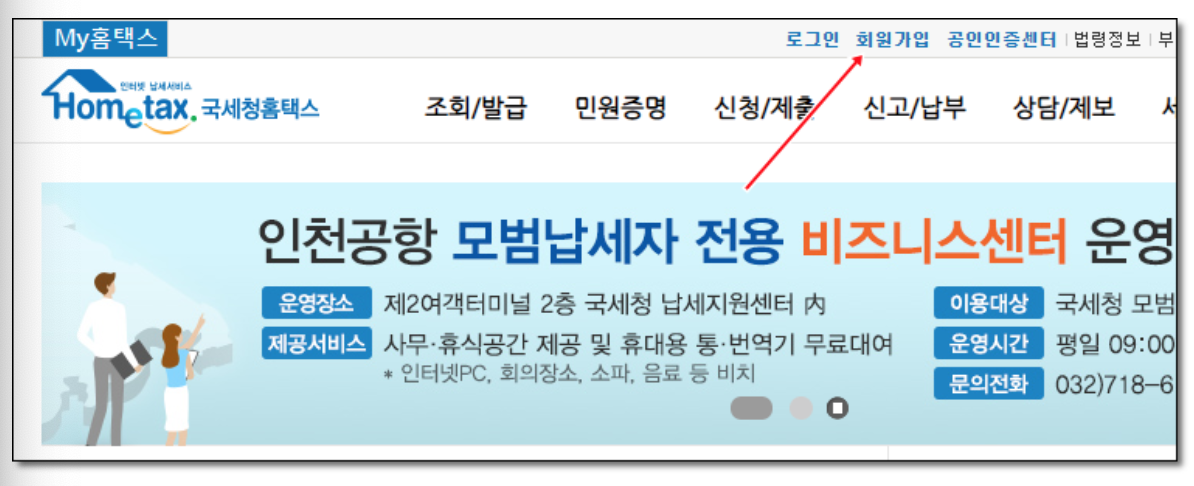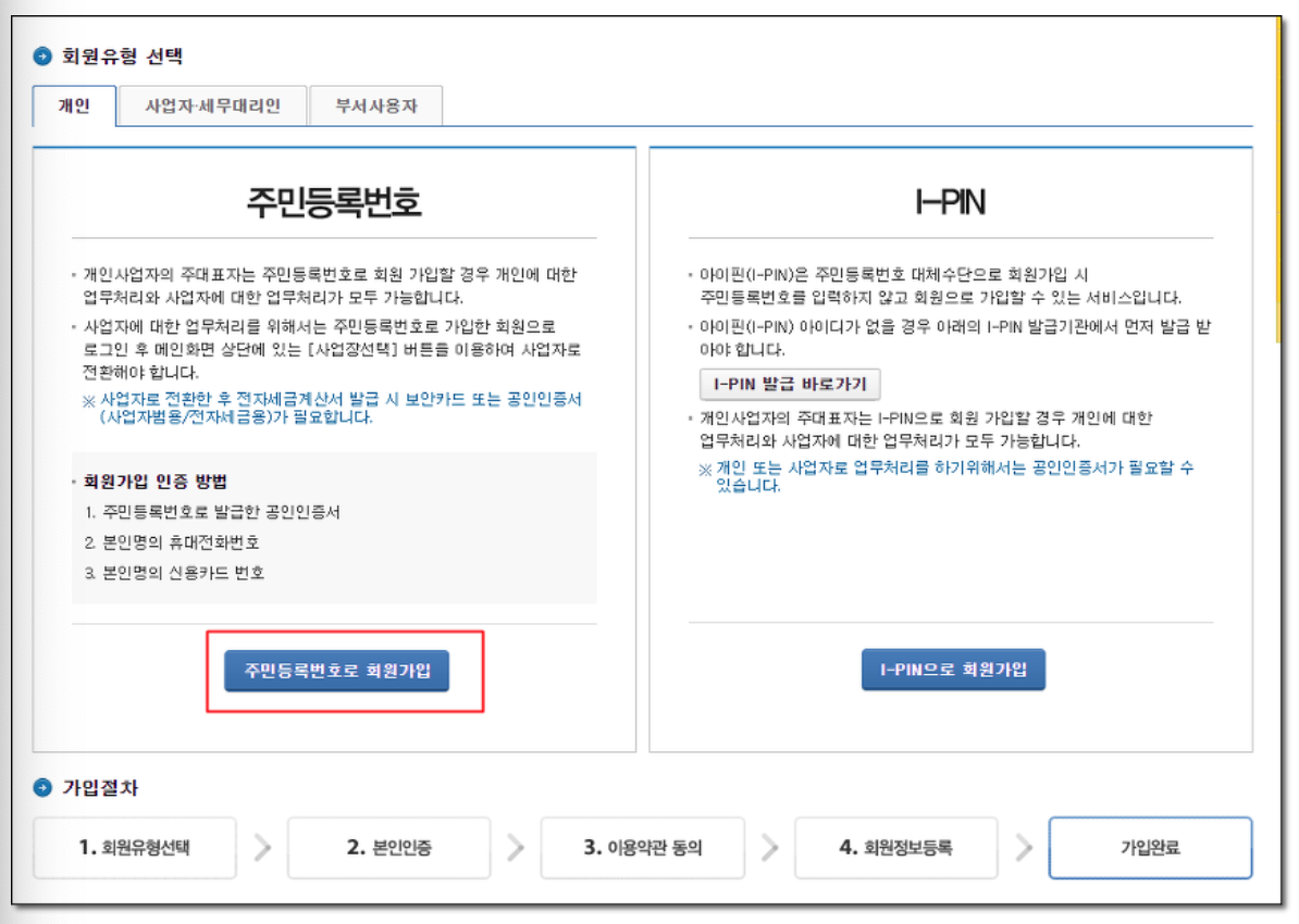 *본인인증수단이 없을경우 관할 세무서 방문후 회원가입 가능