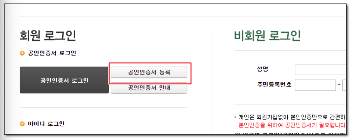 [공인인증서] 클릭후 자신의 공인인증서 를통한 로그인을 해줍니다.