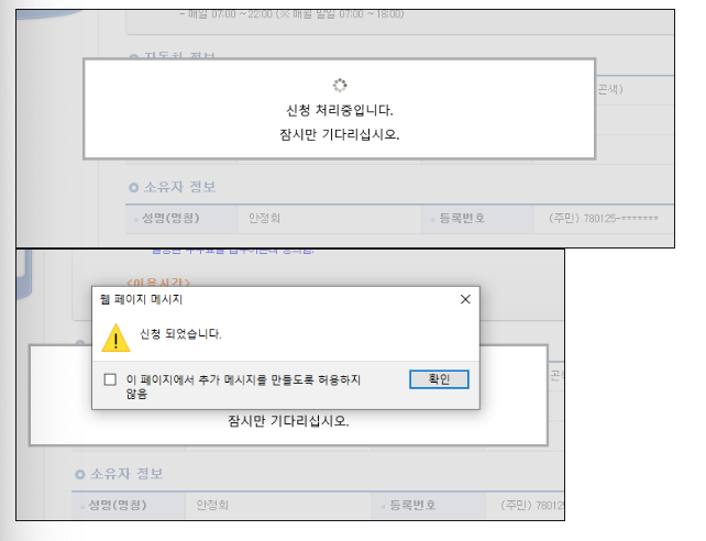 7. 약간의 시간이 걸립니다. 처리가 끝난후 확인을 눌러주세요