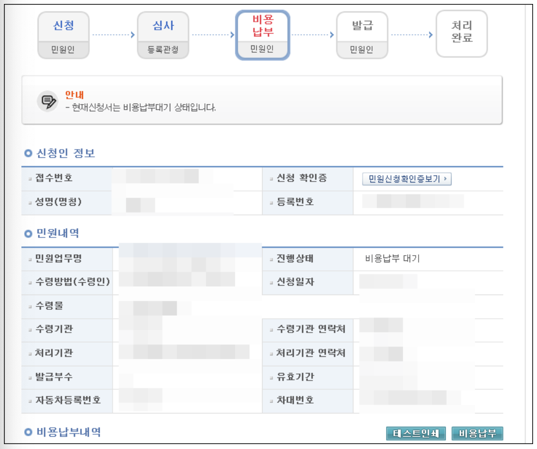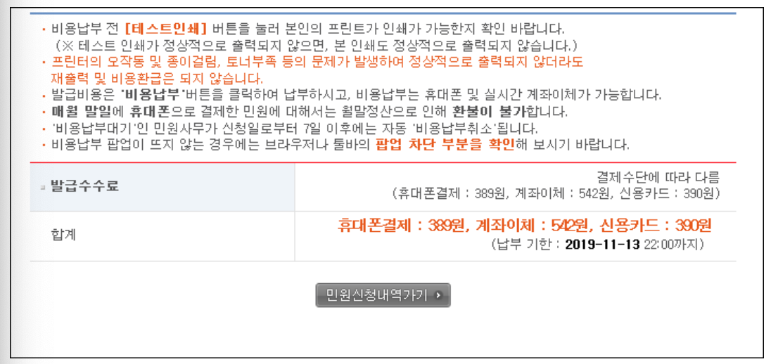 10. 모든 처리가 끝나면 [민원신청내역가기] 클릭하시고 다시한번 내용을 확인해 주세요