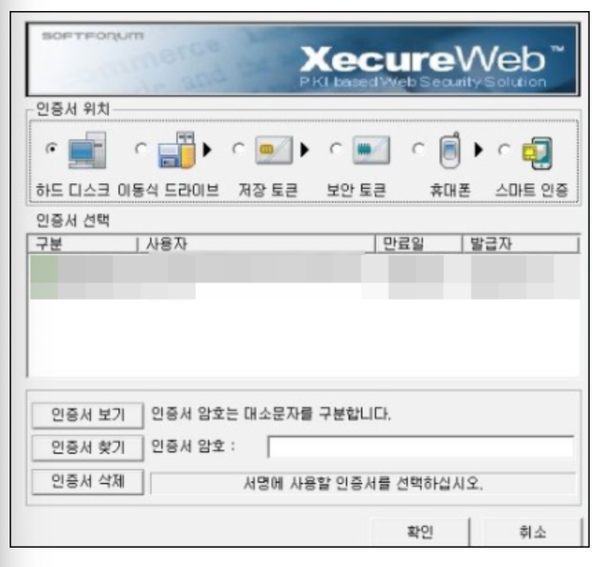 8. 본인 인증을 위해 공인인증서를 선택하시고 암호를 입력해 주세요