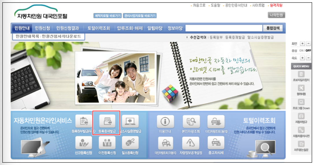 1. 자동차민원 대국민포털 홈페이지 으로 접속 합니다.