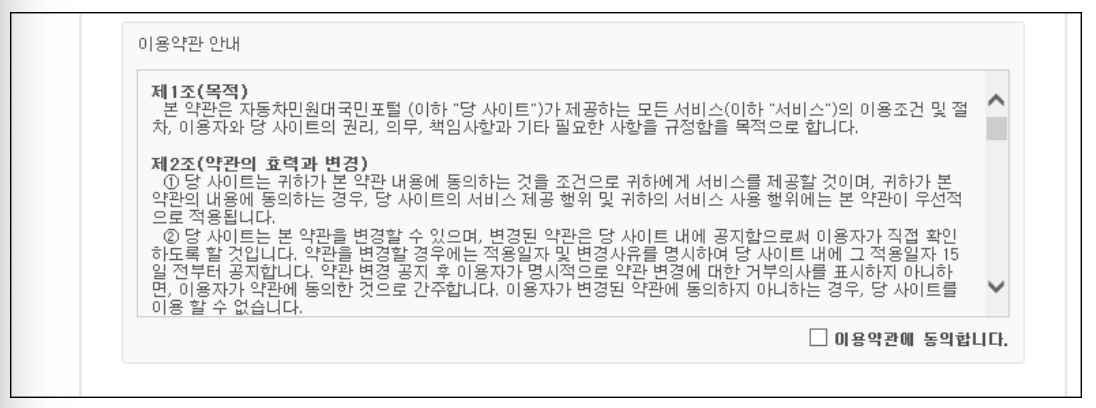 5. 이용약관 안내 사항을 읽어 보시고 이용약관에 동의에 체크 합니다.