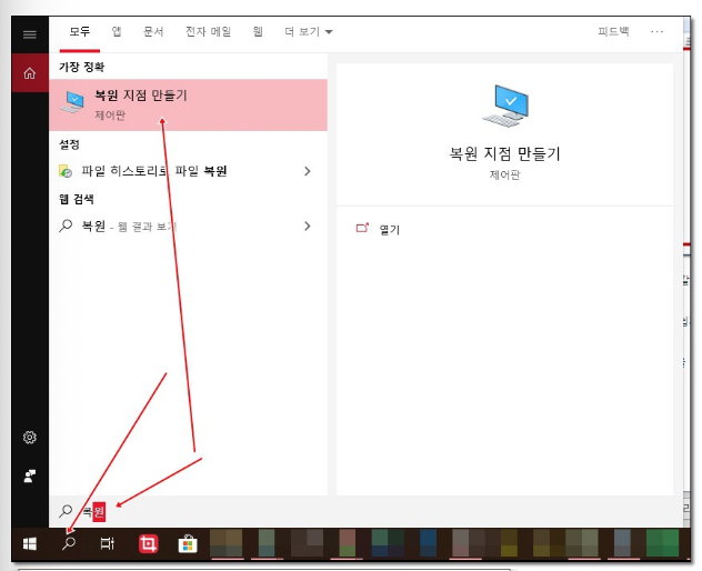 또는 시스템 복원으로 해당 애드웨어가 설치되기전으로 복원할수 있다. 윈도우10 사용자라면 작업표시줄 검색 아이콘에서 "복원"을 입력한다. 시스템 복원도구가 실행되는데 여기서 원하는 시점을 선택후 [시스템복원] 한다.