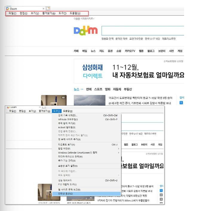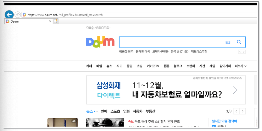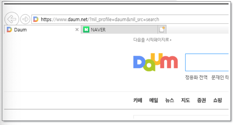 1. 익스플로러를 열어줍니다. (Daum->Naver) 변경 예정
