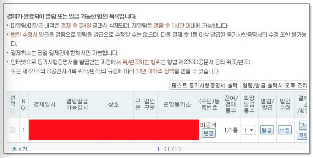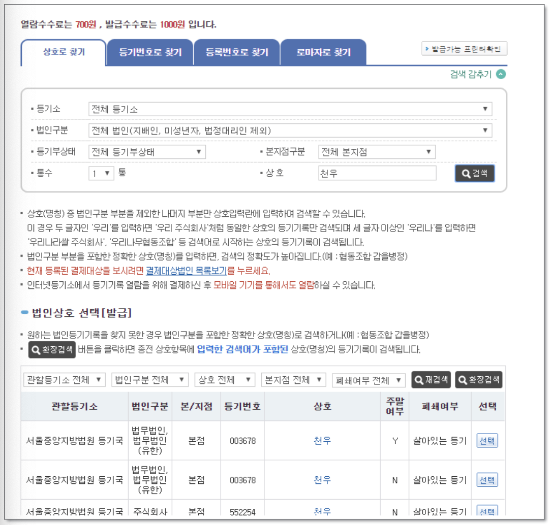 법인등기부등본 발급에는 수수료가 필요하며 열람시 700원 발급시 1000원의 비용이 발생합니다.