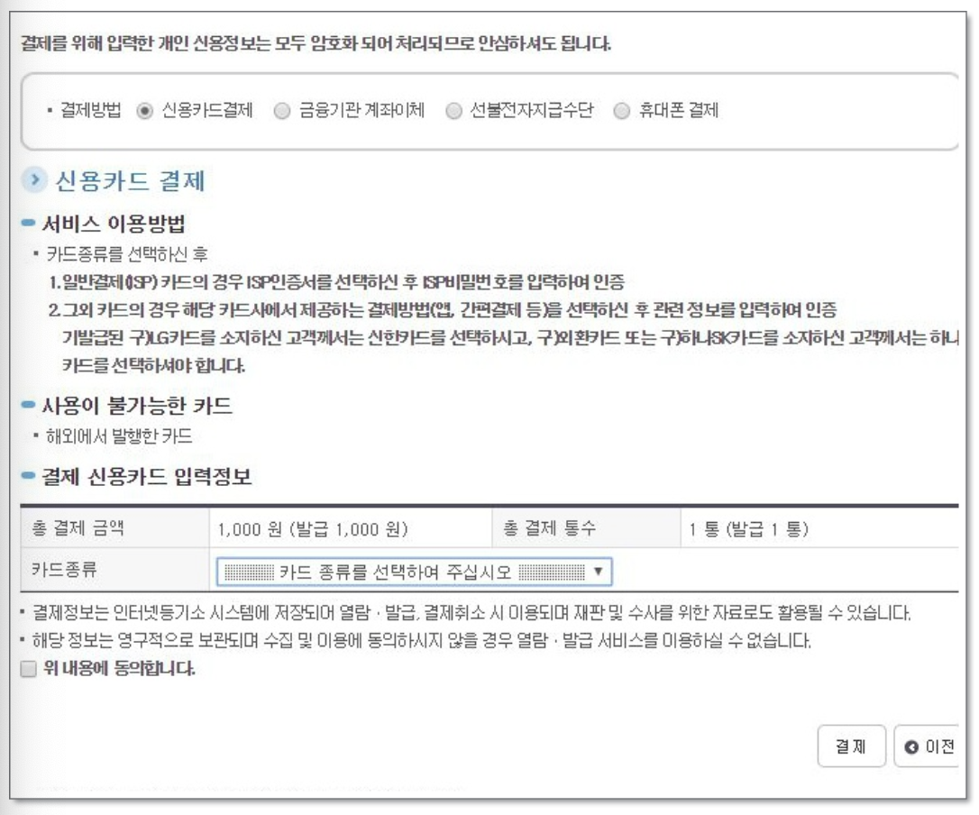 10. 결재방법 선택후 [결제] 합니다.