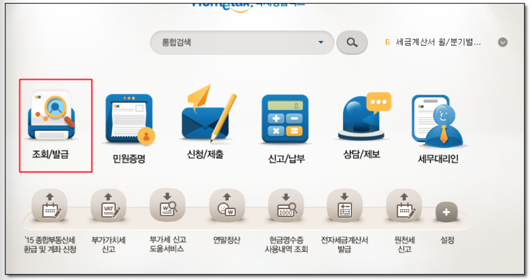 4. 로그인 완료 되었다면 [조회/발급] 으로 들어가 줍니다.