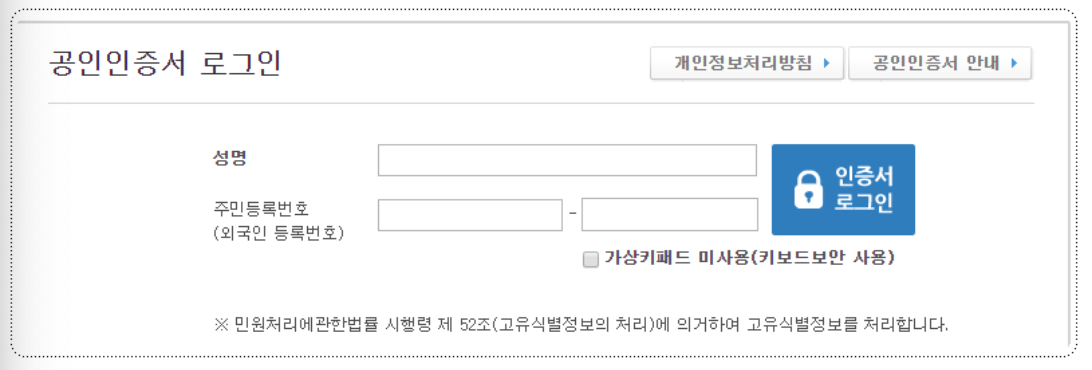 자신의 개인정보 입력 및 [인증서 로그인] 클릭