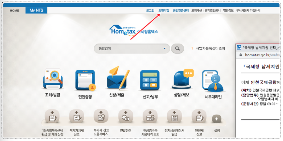 2. 홈택스 로그인후 회원가입 후 로그인 해줍니다. (로그인시 공인인정서 필수)