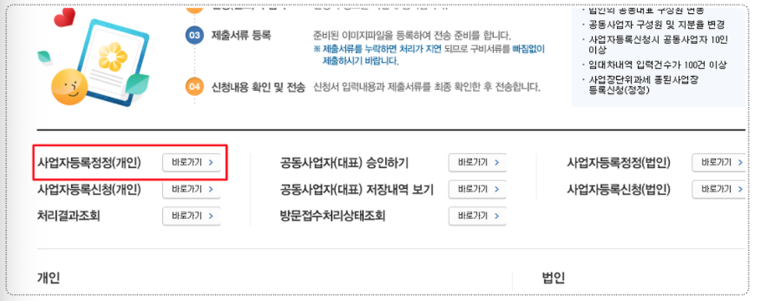 5. 사업자등록정정 (개인) [바로가기] 해줍니다.
