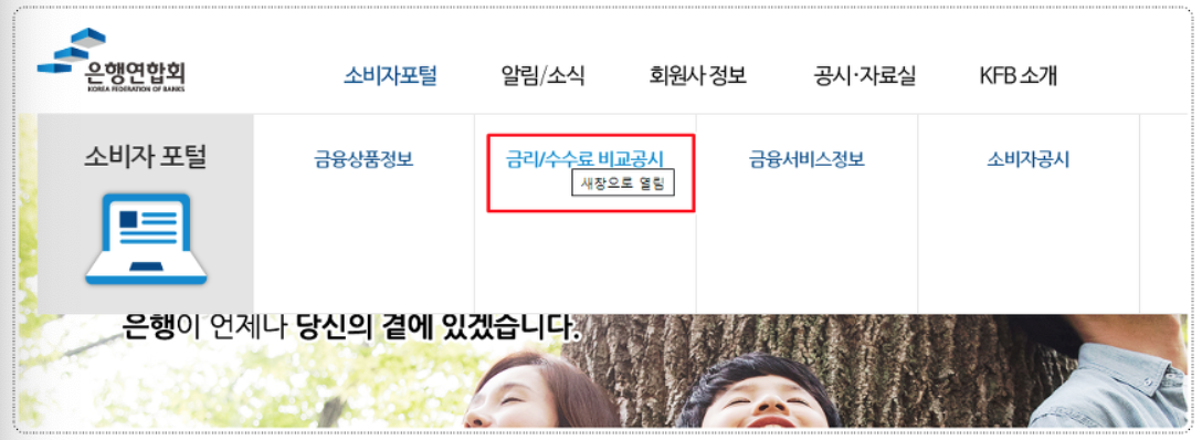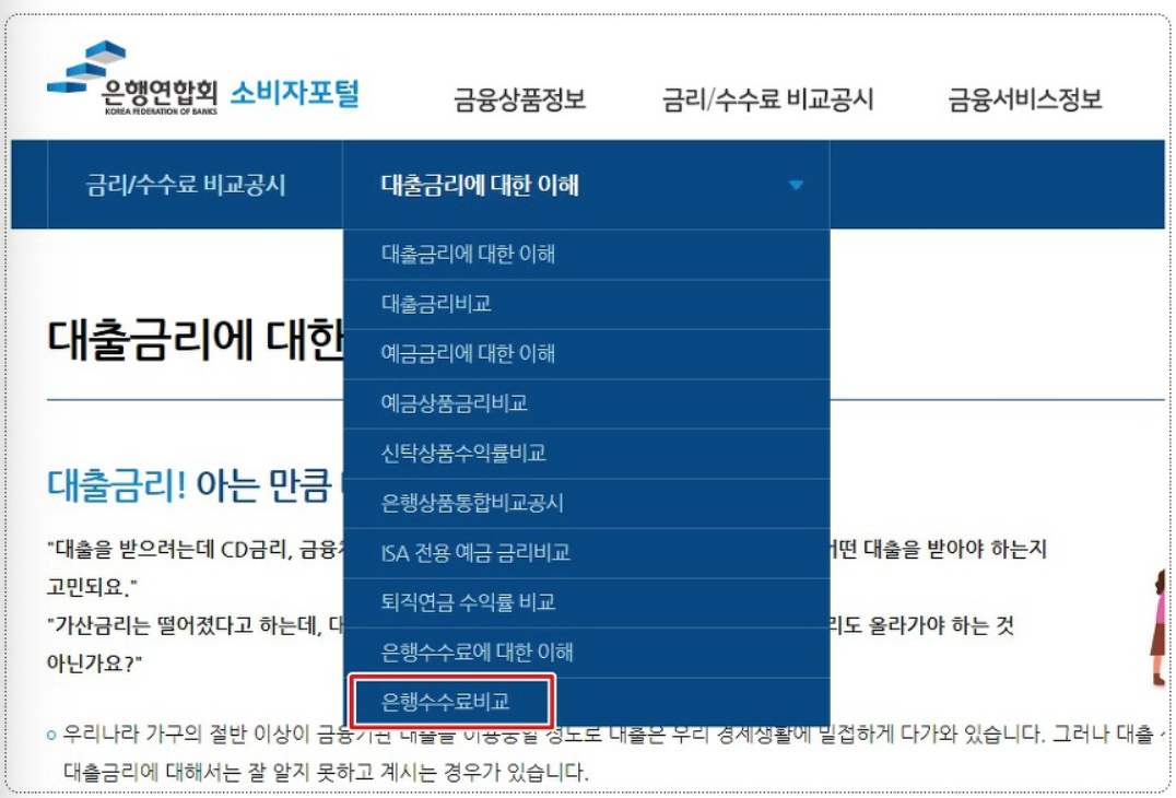 4. 메뉴속 [은행수수료비교] 클릭
