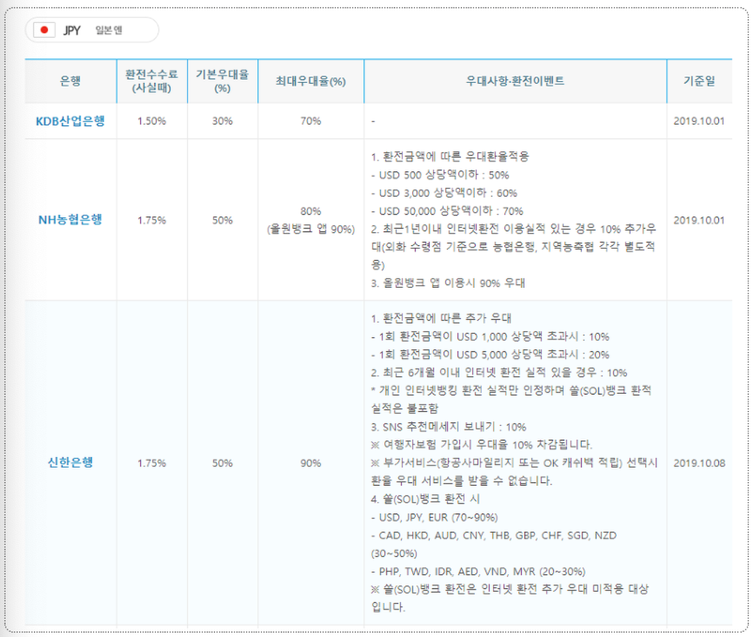이중 자신이 에게 가장 맞는 은행사를 선택후 환전하시면 좋습니다.