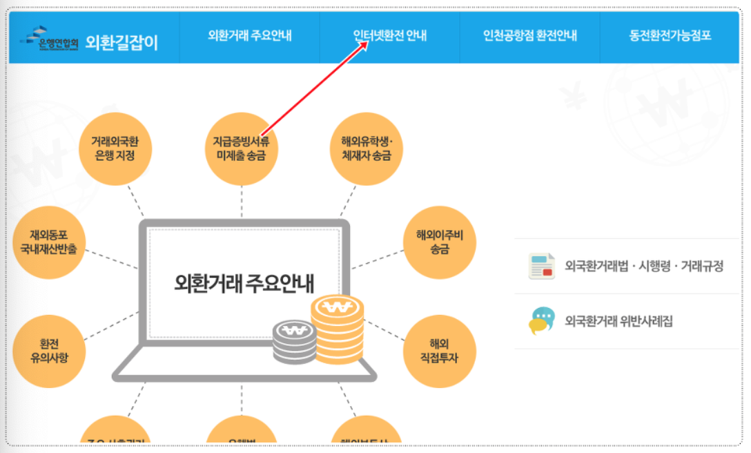 2. 사이트에 접속했다면 [인터넷환전 안내] 클릭해 줍니다.