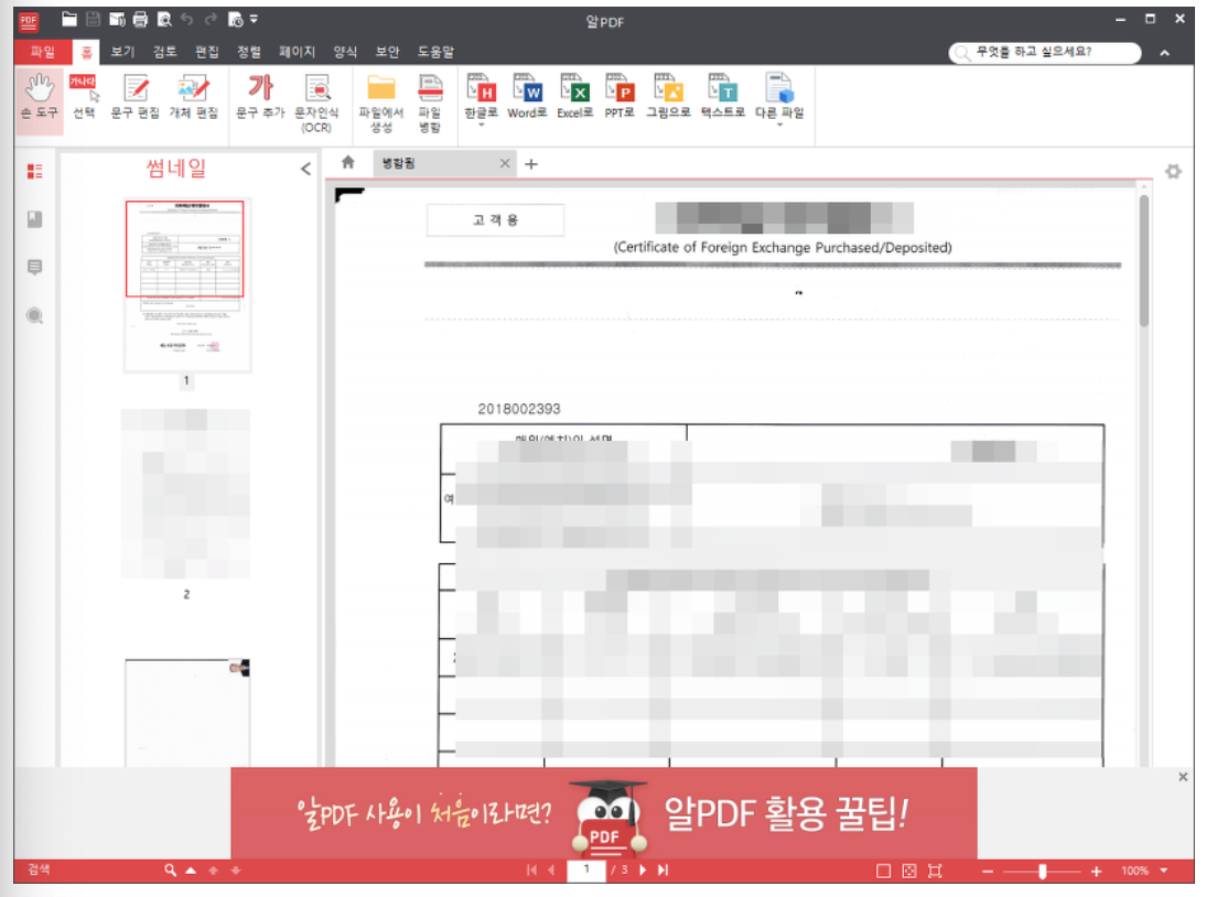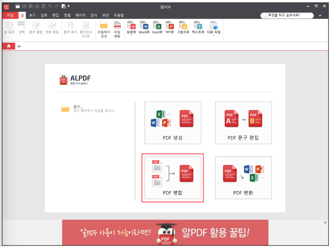 1. 설치가 완료되었다면 알pdf 파일을 열어 PDF병합 클릭 합니다.