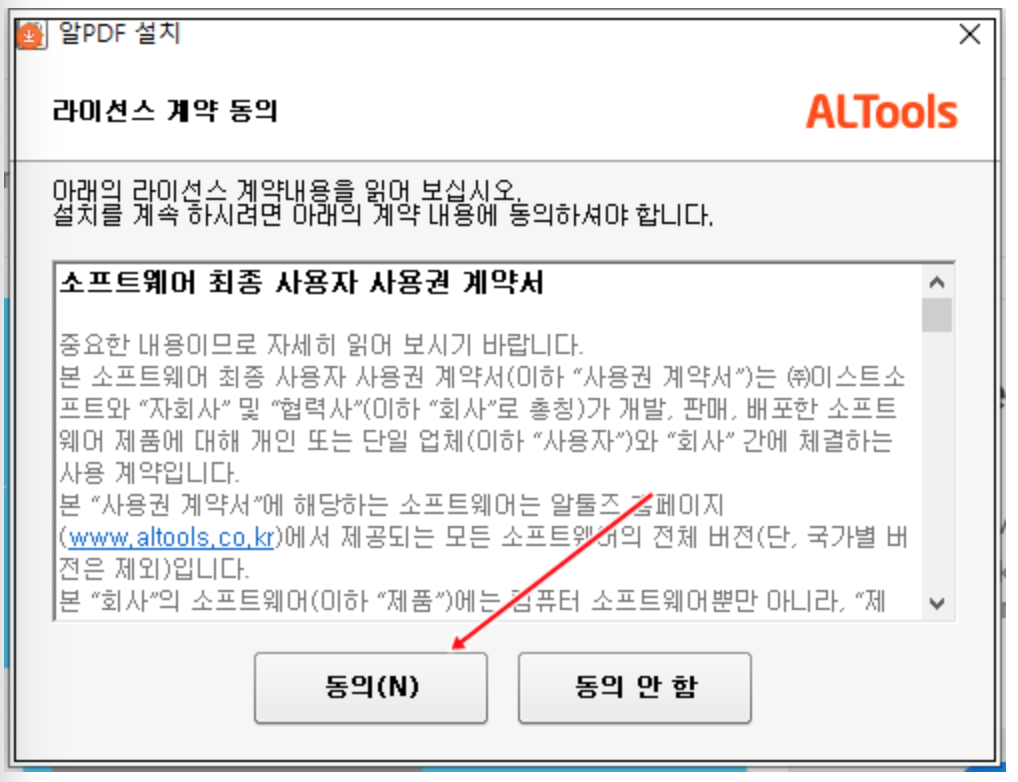 3. 라이선스 계약 동의 약관을 읽어보신후 [동의] 클릭