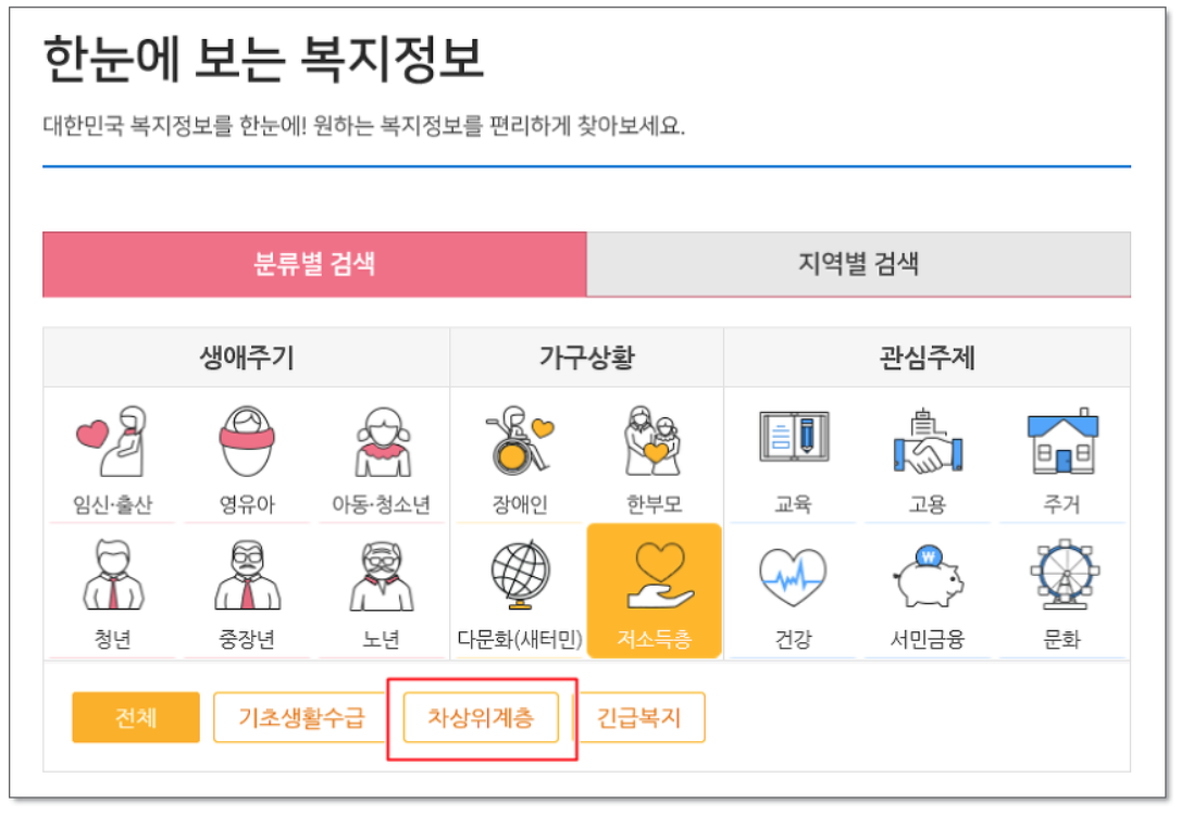 3. 차상위계층 복지 정책을 볼수 있습니다.