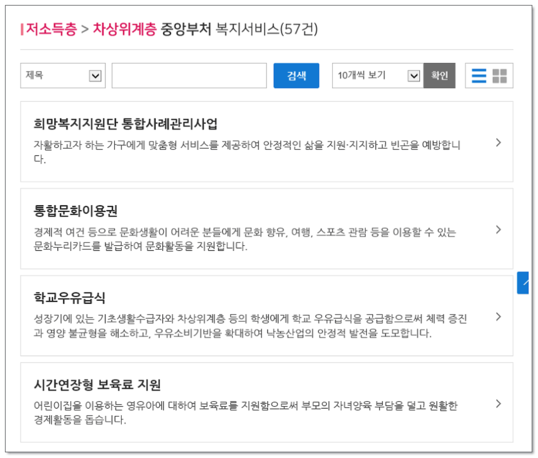 5. 원하는 카테고리의 복지정책을 클릭합니다.