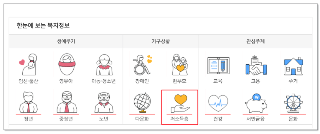 2 .접속후 한눈에보는 복지정보 항목에 [저소득층] 클릭