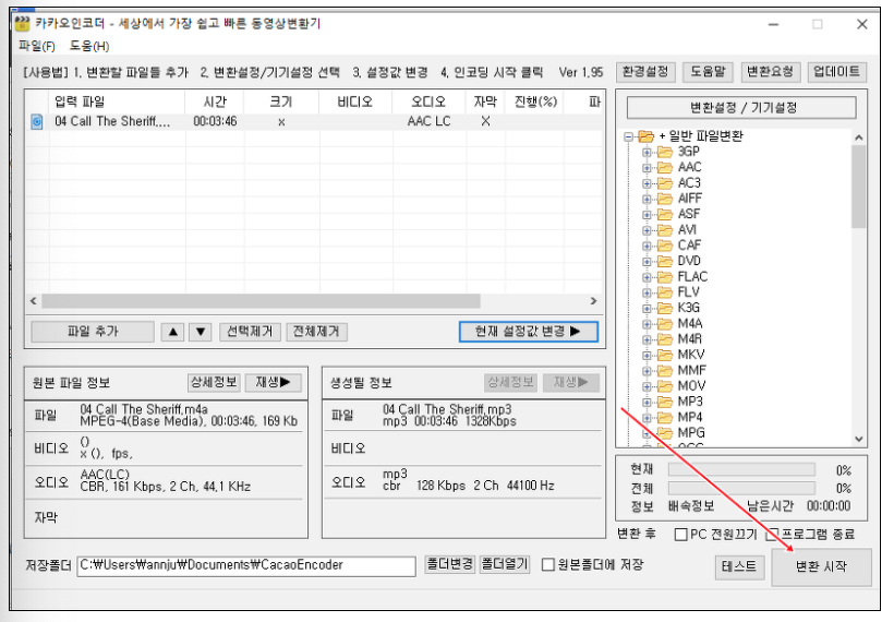 m4a mp3 변환작업 방법