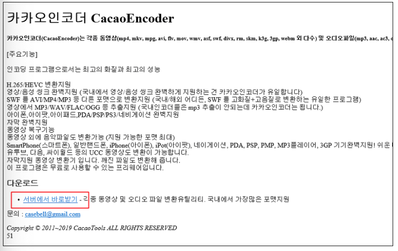 위 서버 카카오인코더 서버 바로가기 후 설치파일을 받아 줍니다. [파일실행]