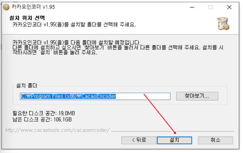 3. 설치폴더 위치 설정후[설치] 클릭