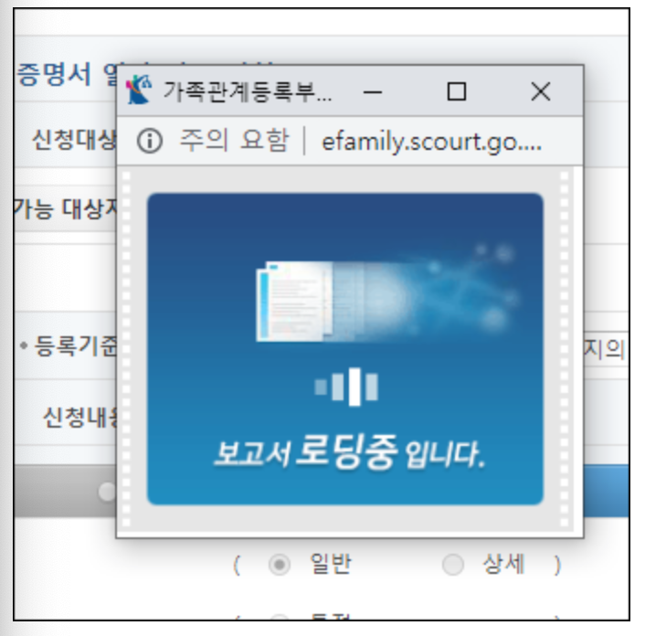 10. 열람을 원할때는 로딩시간이 조금 소요될수 있습니다. 로딩완료후 가족관계증명서 확인 가능 합니다.