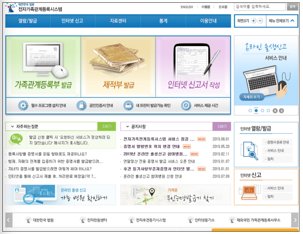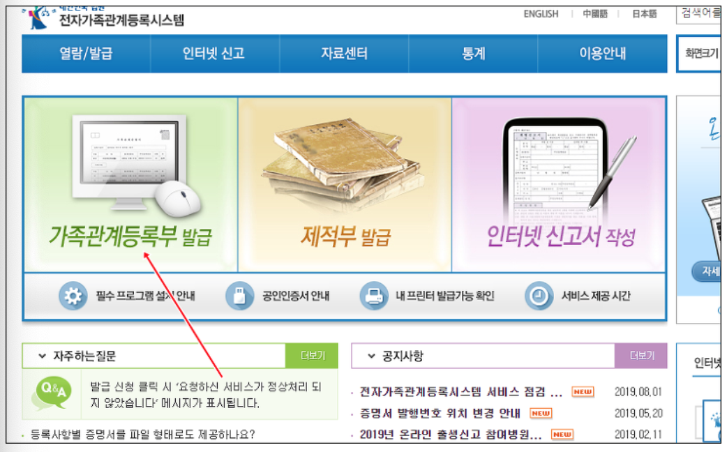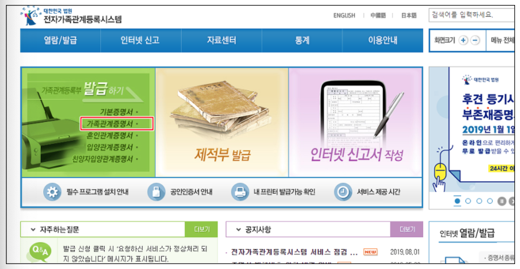 이전 까지 가족관계 증명서 발급을 가까운 관공서에서 발급 받으셨다면 이번 시간에는 집에서 간단히 인터넷을 이용한